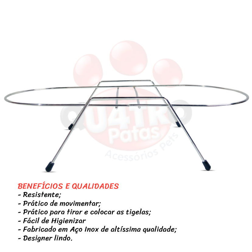 Design moderno confeccionada em inox de alta qualidade, facilitando a lavagem e resistente, podendo ser usado para ração e água, duplo com suporte.